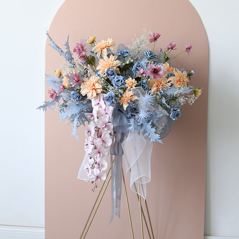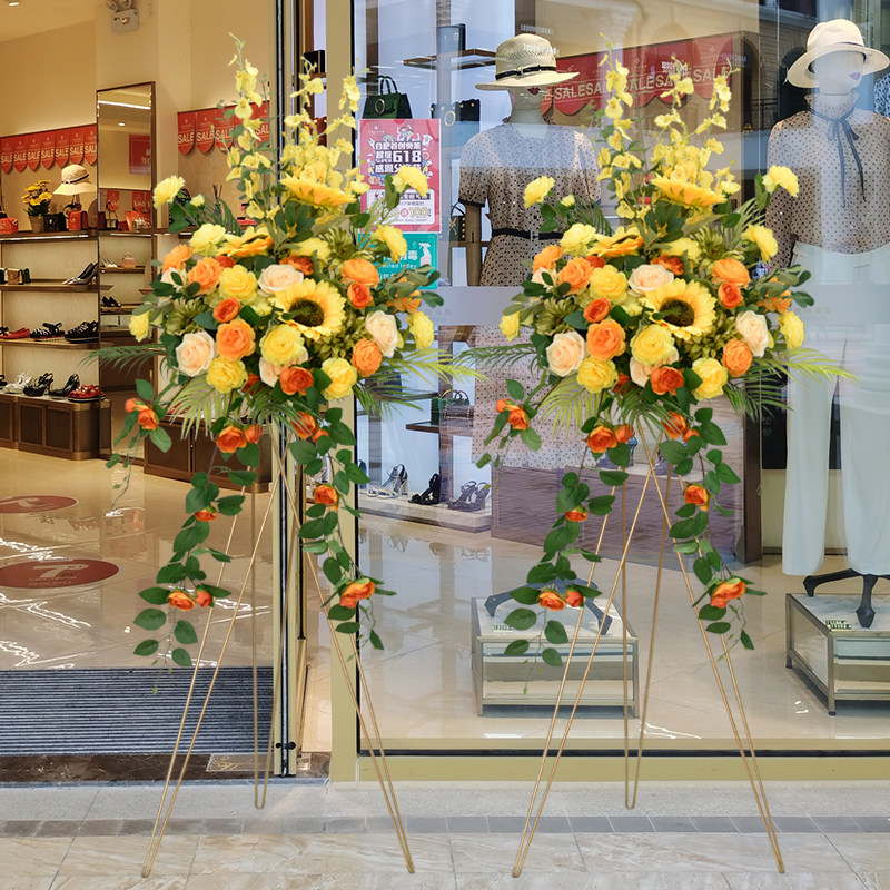 开业花篮假花轻奢三脚架仿真花商场橱窗迎宾摆件车展交车仪式用花