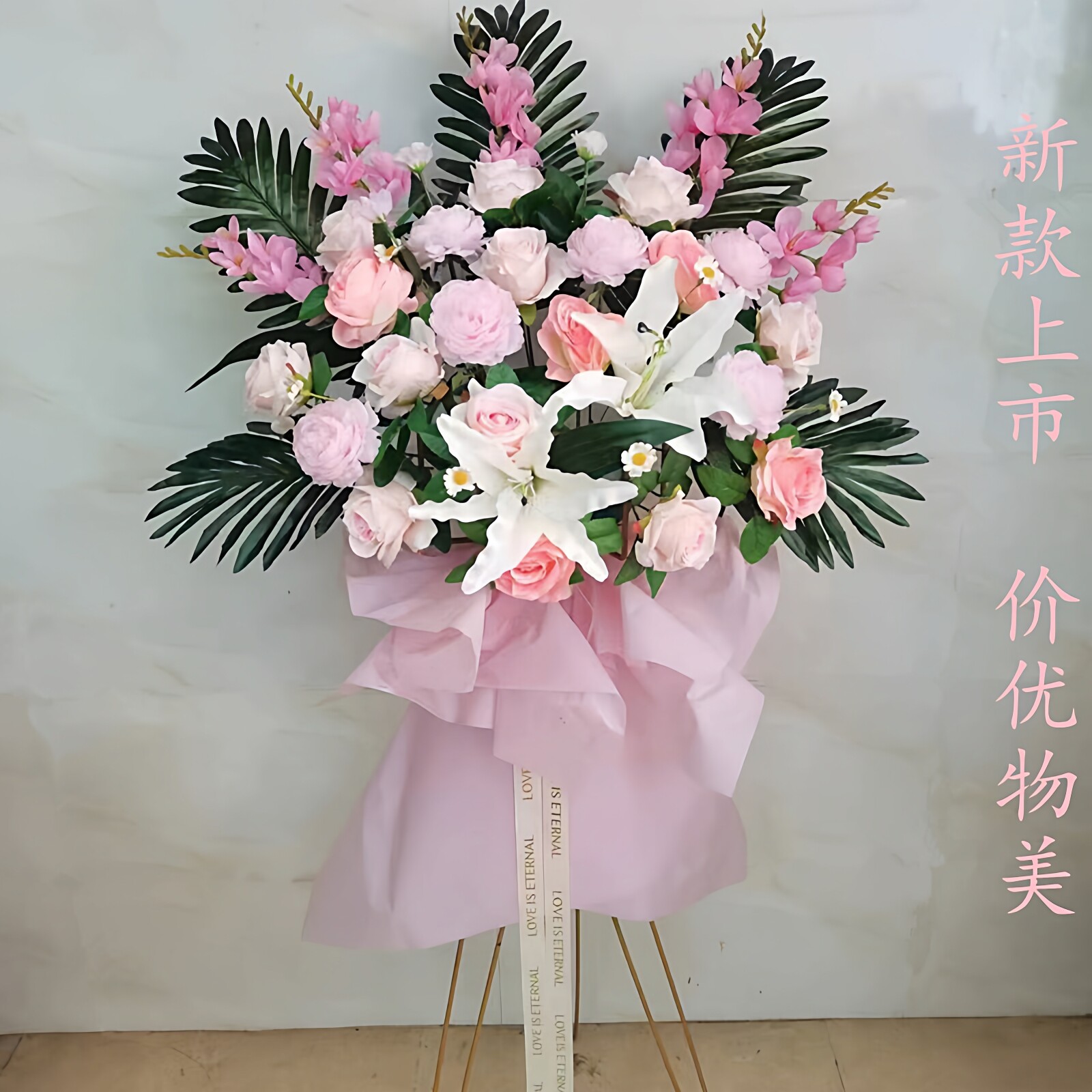 韩式开业花篮婚庆绢花庆典商务用花乔迁新店开张迎宾三脚架摆件仿