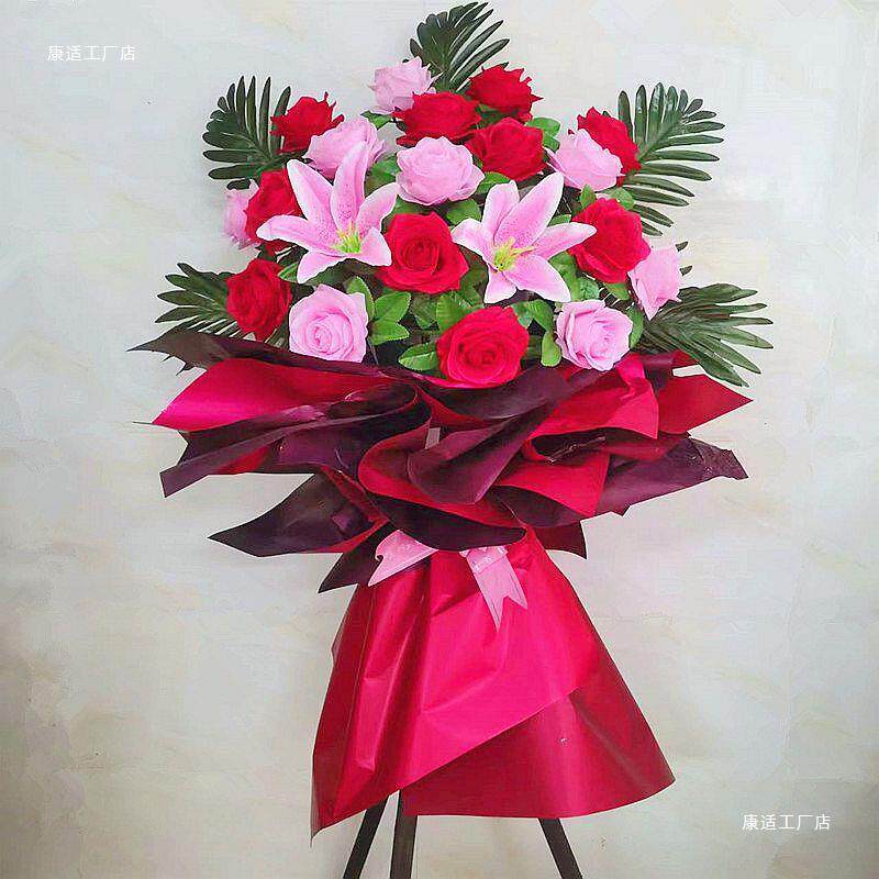 大花篮开业铺包装纸 店塑料玫z瑰大红玻纸璃 商务用花水果篮花艺