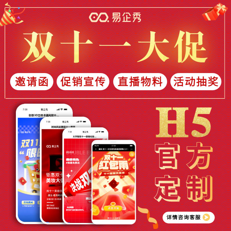 易企秀H5双十一大促宣传物料直播促销活动抽奖邀请函海报视频定制