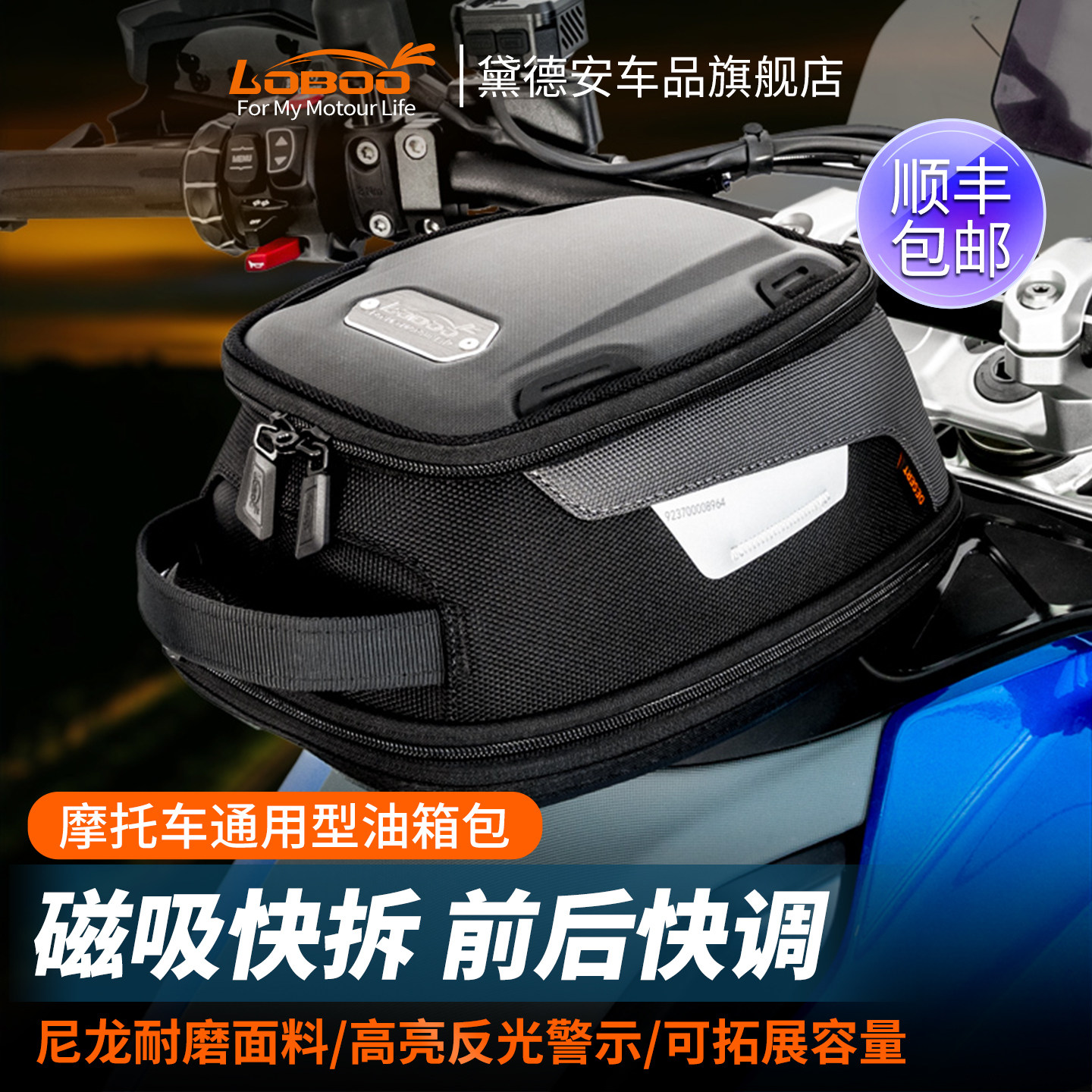 LOBOO萝卜摩托车油箱包机车摩旅装备通用拓展包磁吸快拆防水反光
