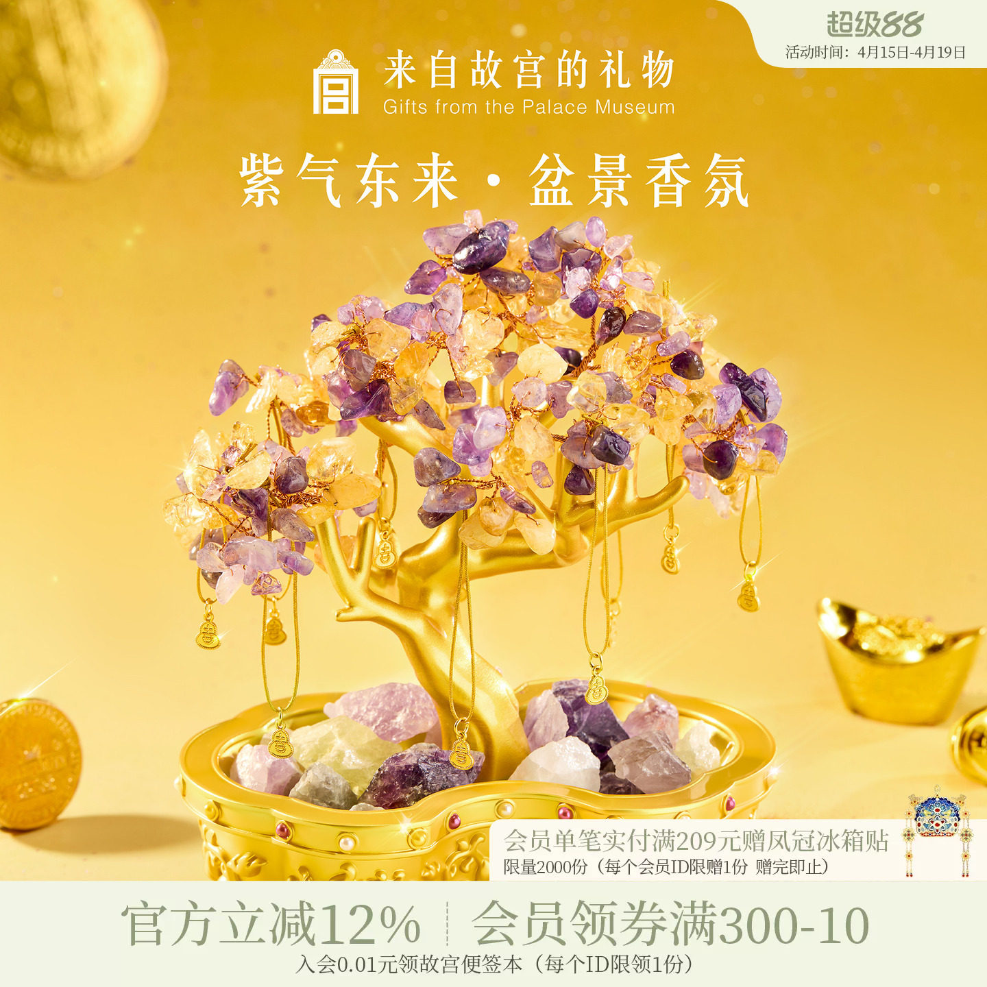 故宫淘宝|紫气东来紫水晶香薰招财摆件文创新婚乔迁开业生日礼物