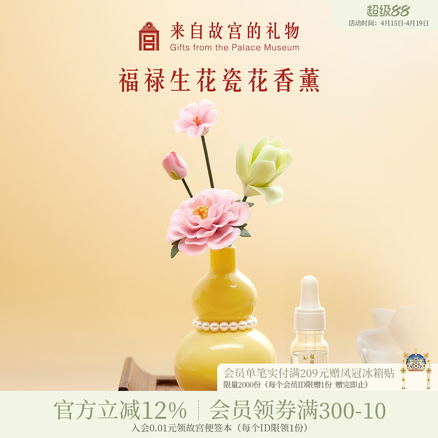 故宫淘宝|福禄生花陶瓷香薰礼盒博物馆文创乔迁新居开业生日礼物