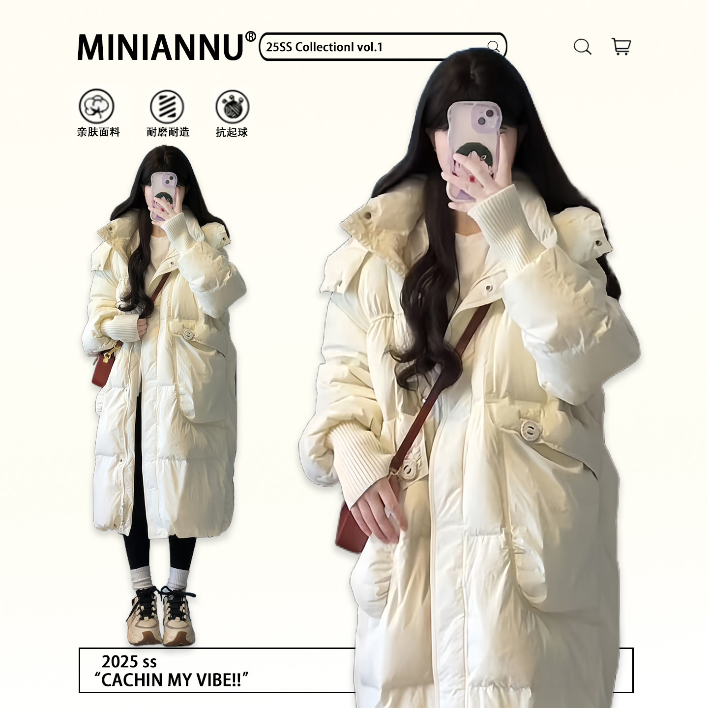 品牌折扣胖MM云朵泡芙棉服女2025中长款连帽加厚面包服宽松外套女