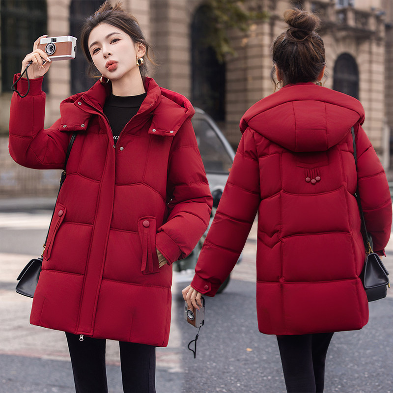 胖mm大码女装保暖加厚中长款棉服女冬季红色洋气百搭显瘦过膝外套