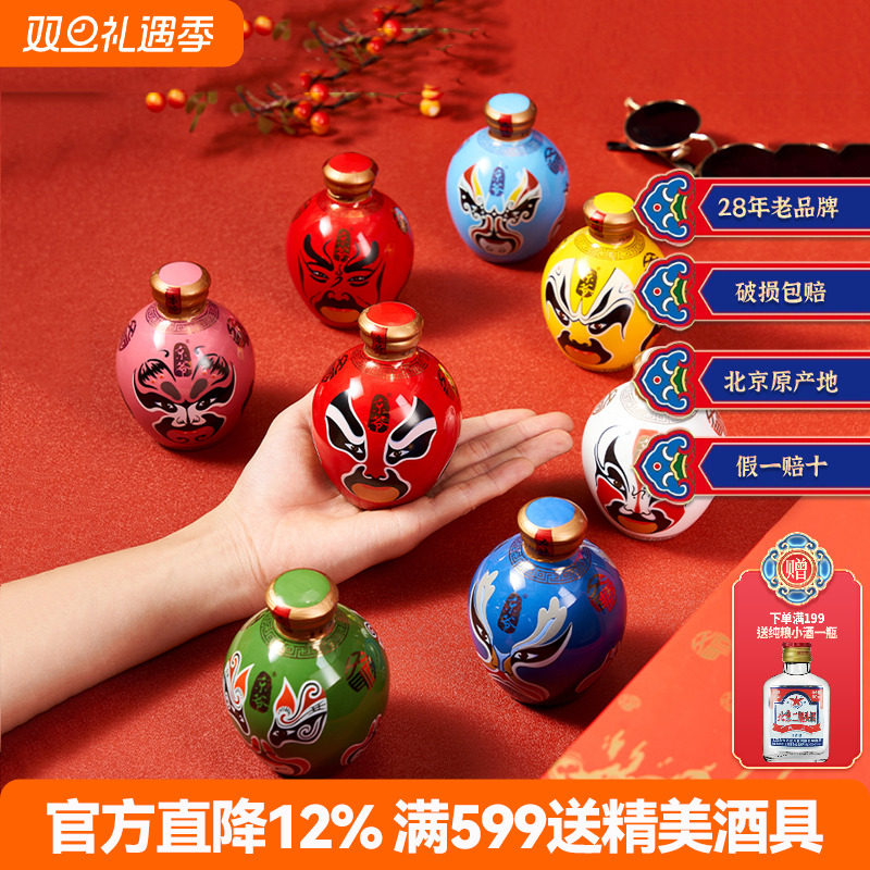 京爷国粹脸谱北京二锅头52度纯粮固态高度小酒版收藏小瓶酒白酒