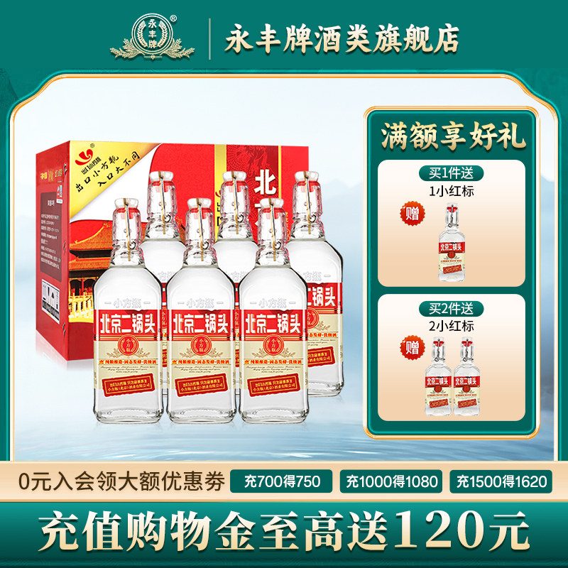 出口小方瓶北京二锅头经典42度清香型白酒6瓶/箱永丰牌官方旗舰店