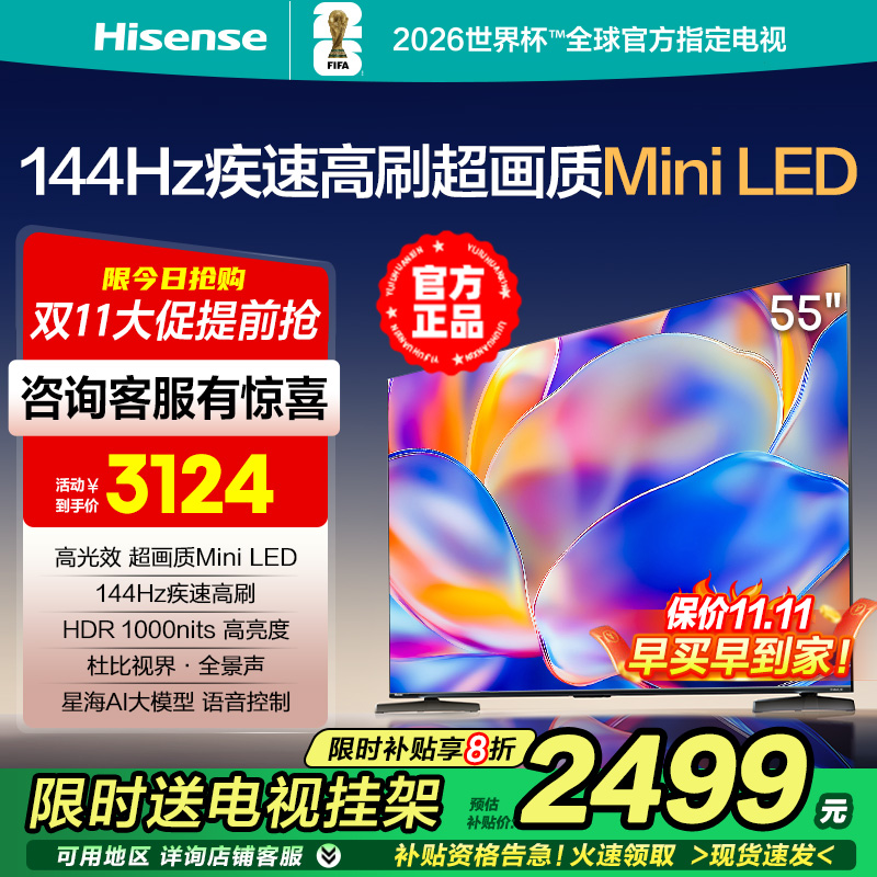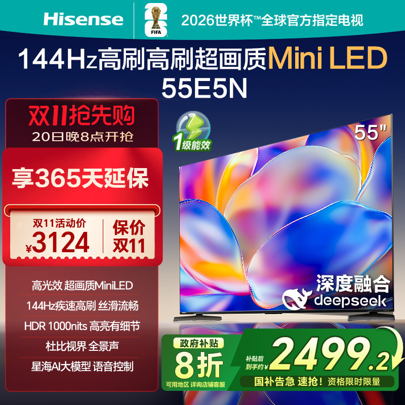 海信电视55E5N 55英寸Mini LED 144Hz高刷电视机液晶以旧换新补贴