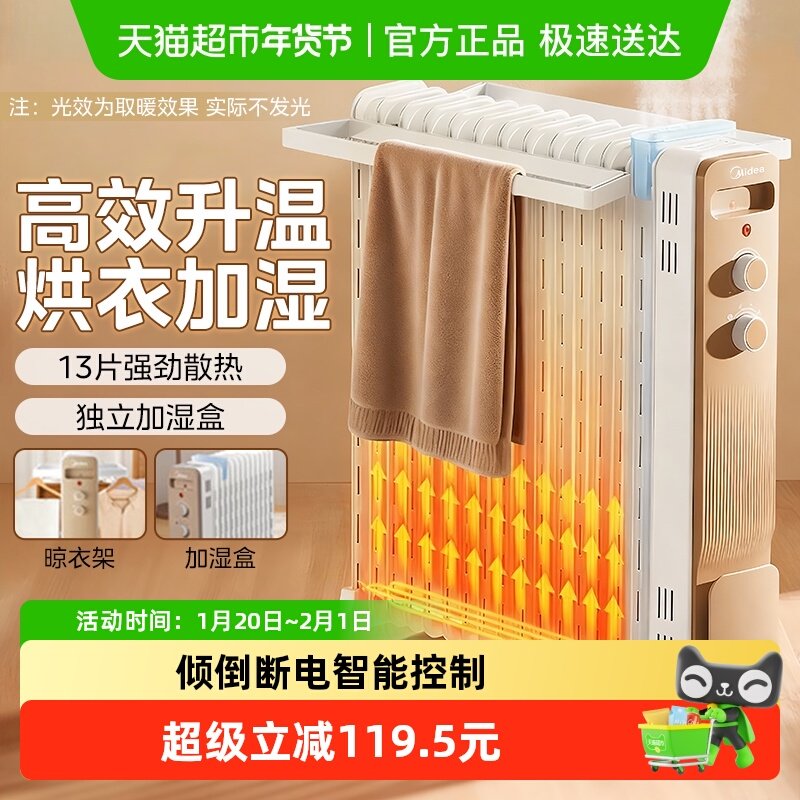美的取暖器油汀家用电暖气客厅卧室电暖器烘衣暖气片节能2026新款