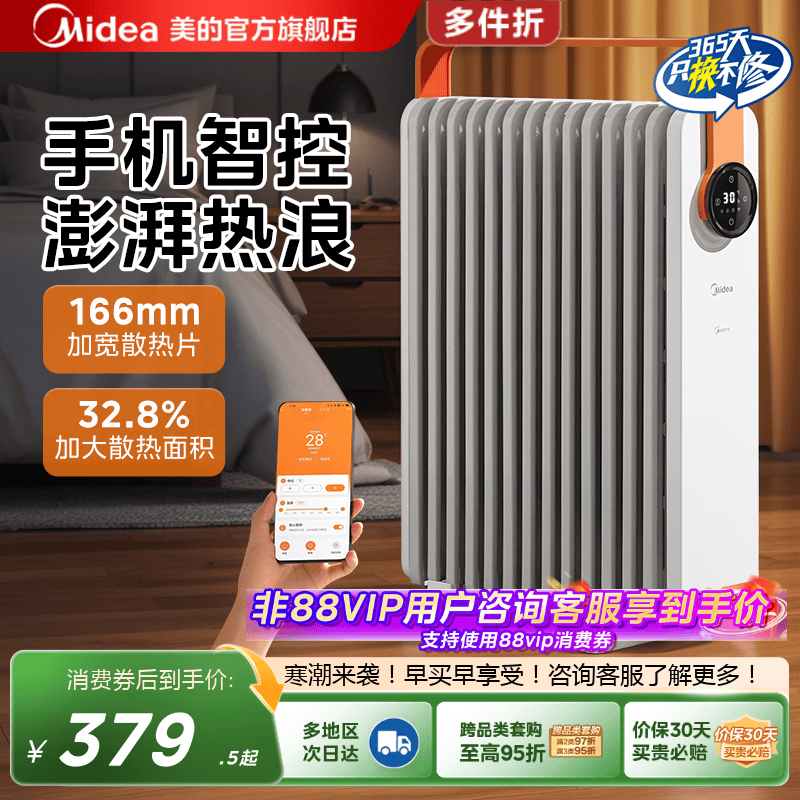 美的油汀取暖器家用智能省电暖气片烤火炉速热暖风机卧室全屋取暖