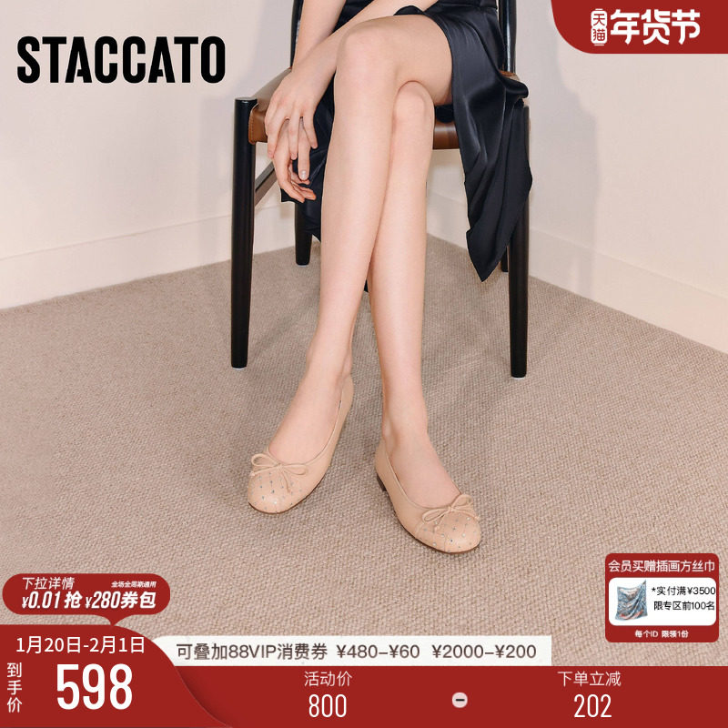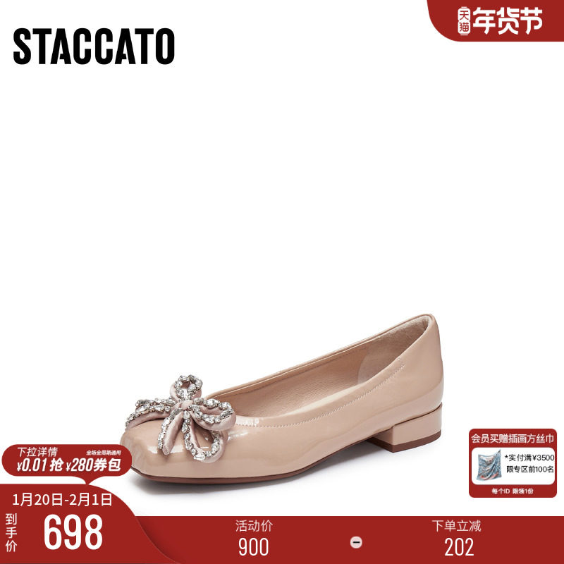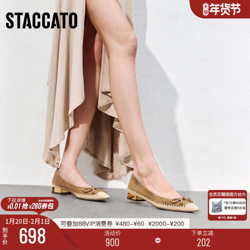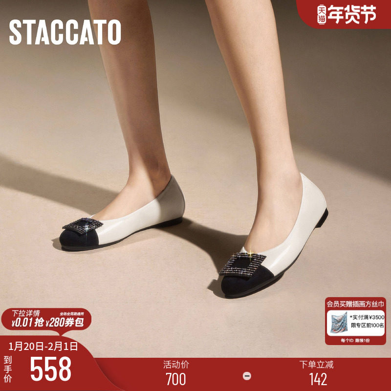 思加图新款复古蝴蝶结浅口鞋单鞋平底鞋通勤女鞋EA412AQ5