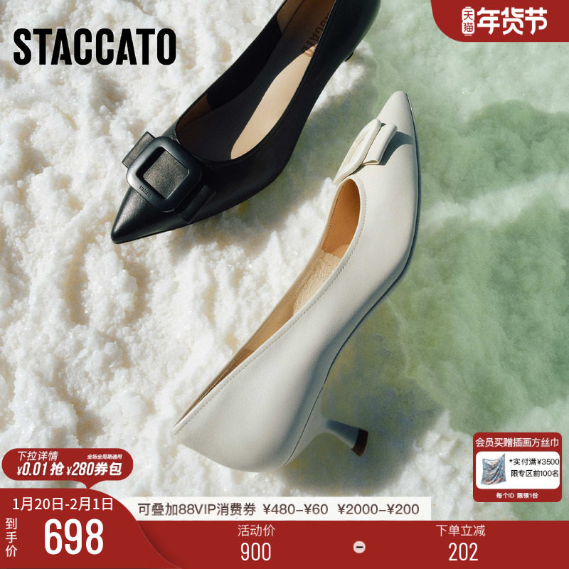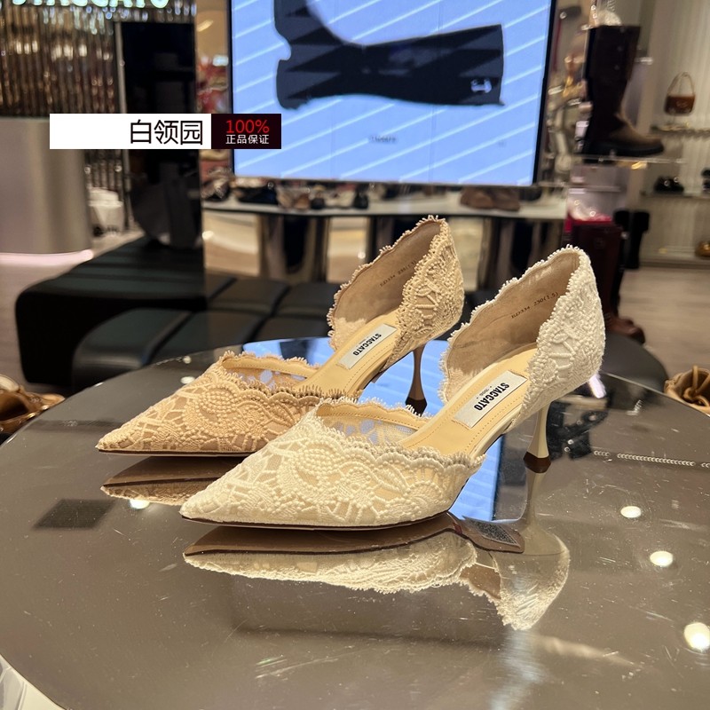 Staccato思加图~专柜正品2026春款仙女鞋蕾丝高跟婚鞋单鞋女ED334