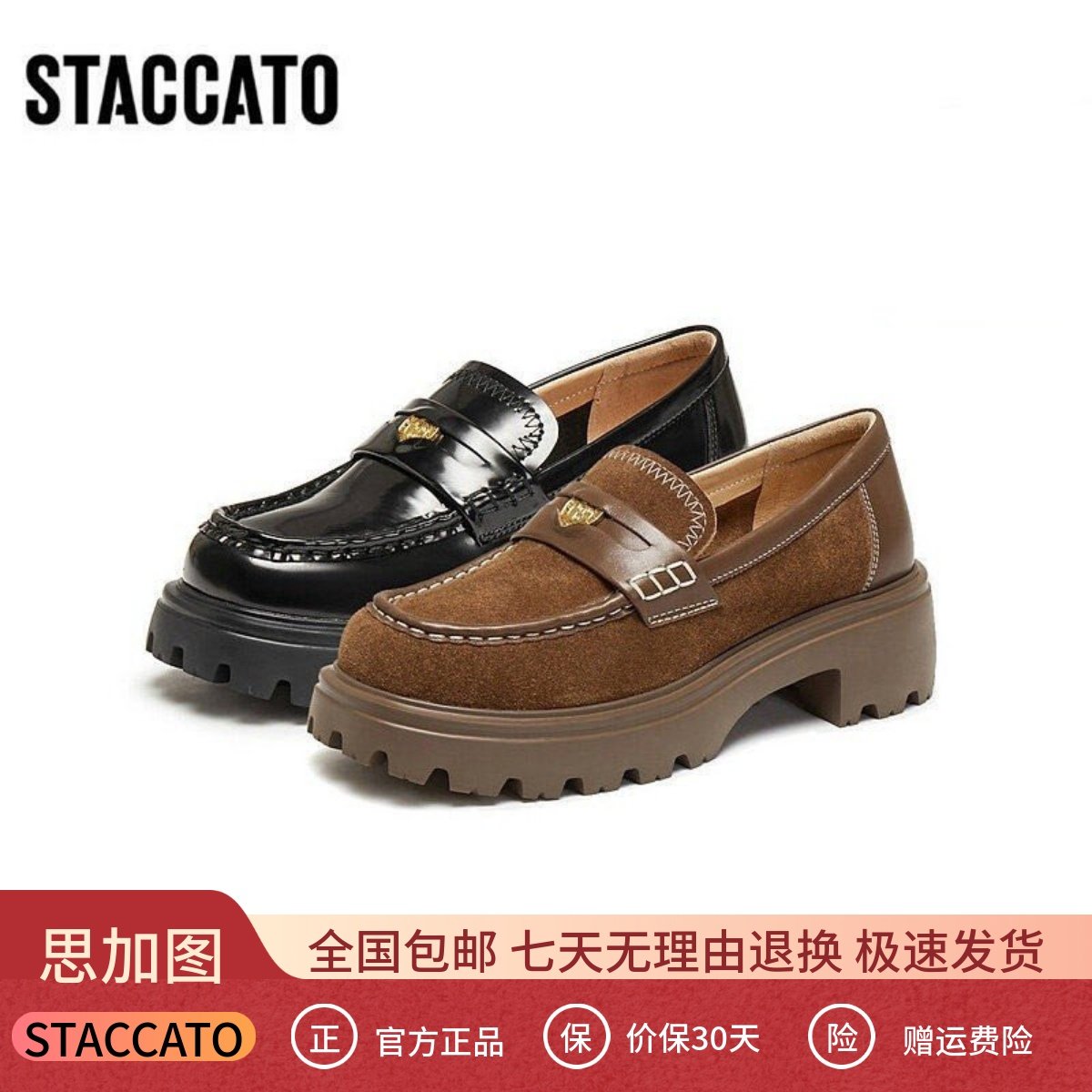 杨幂同款思加图2026新款秋叶伯爵乐福鞋英伦厚底小皮鞋单鞋女鞋子