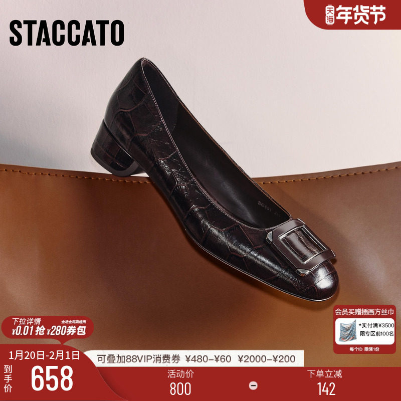 思加图新款法式复古通勤奶油鞋浅口鞋单鞋皮鞋女鞋子S8036CQ5