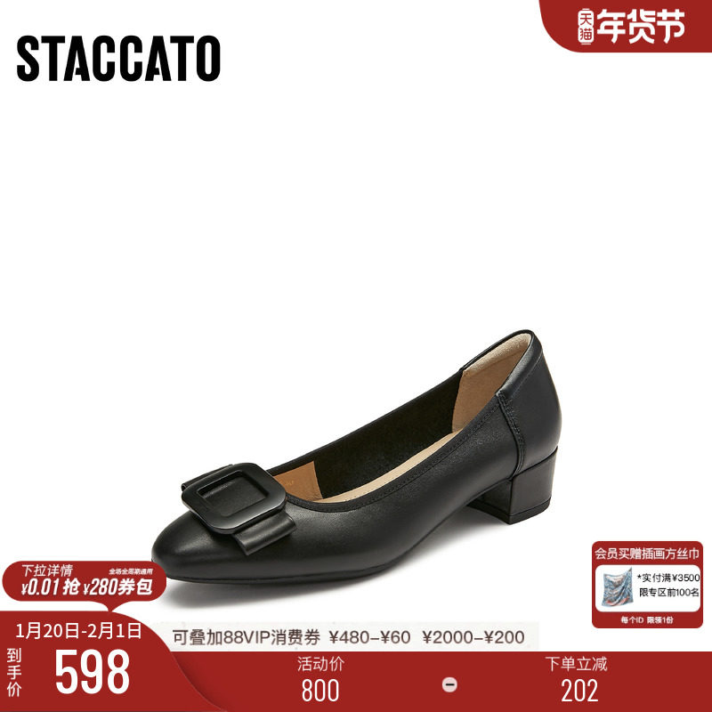 思加图新款中环街优雅通勤黑色单鞋浅口鞋粗跟女鞋子EGS01CQ5