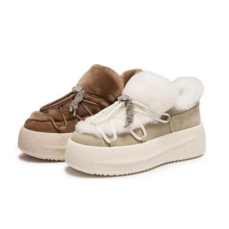 思加图2026春季女鞋复古德训鞋保暖毛毛鞋厚底休闲鞋女单鞋 J2551