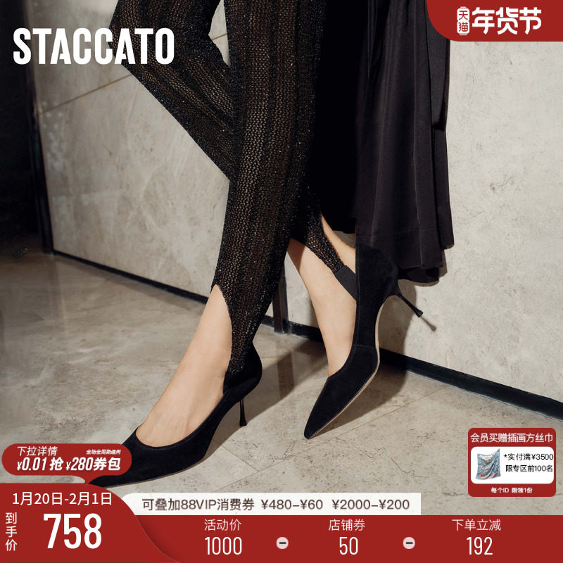 思加图新款法式复古高跟鞋细跟尖头浅口百搭单鞋女鞋H6511CQ5