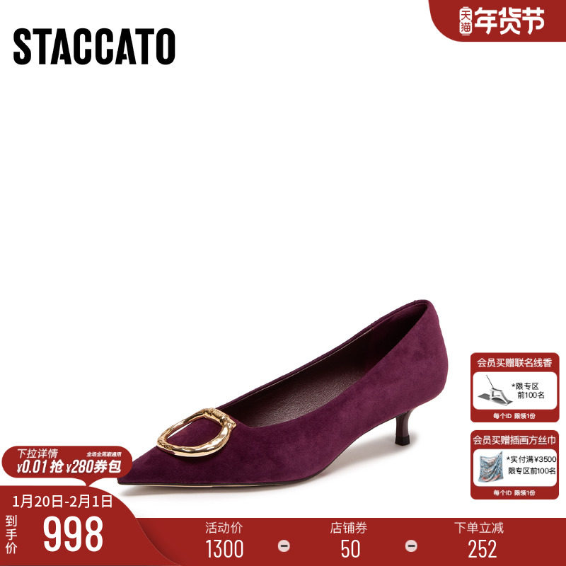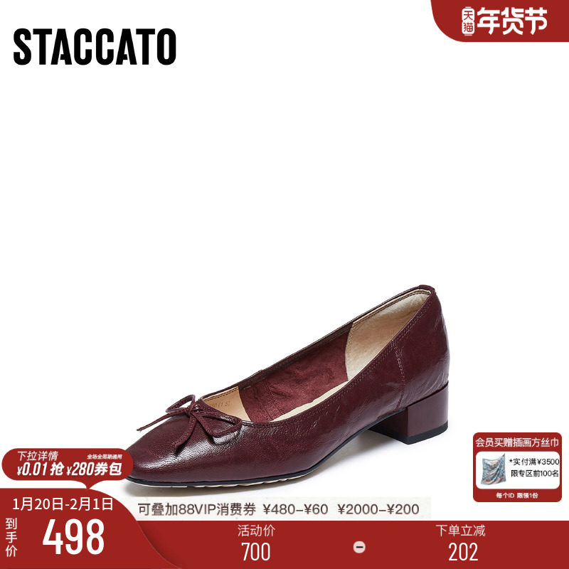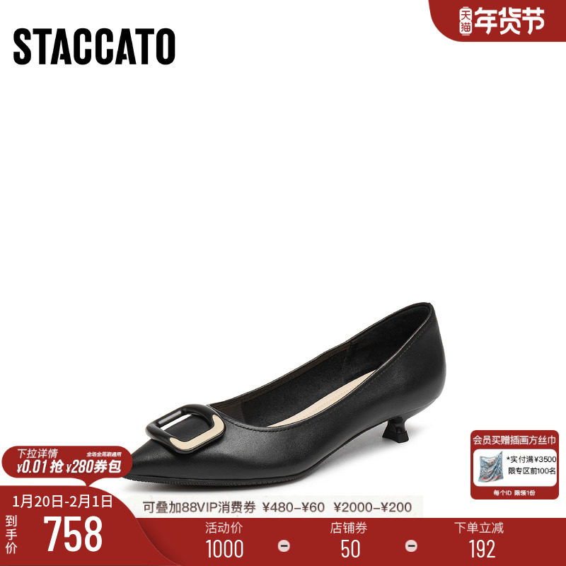思加图2026新款通勤法式浅口鞋细跟红色单鞋黑色气质女鞋H3273AQ6