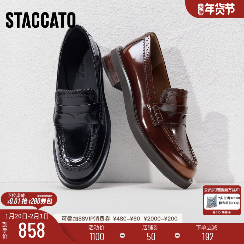 思加图2026春季新款英伦风乐福鞋一脚蹬粗跟单鞋女皮鞋EOQ15AA6