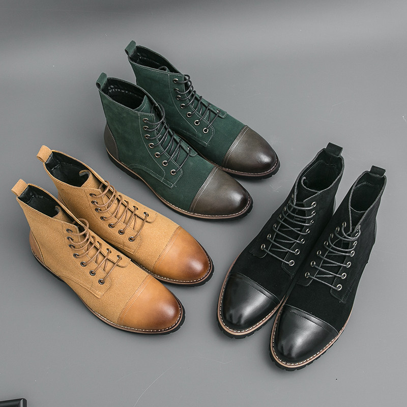 2026男款翻毛皮高帮鞋英伦青年真皮牛反绒商务大头工装鞋反帮皮鞋