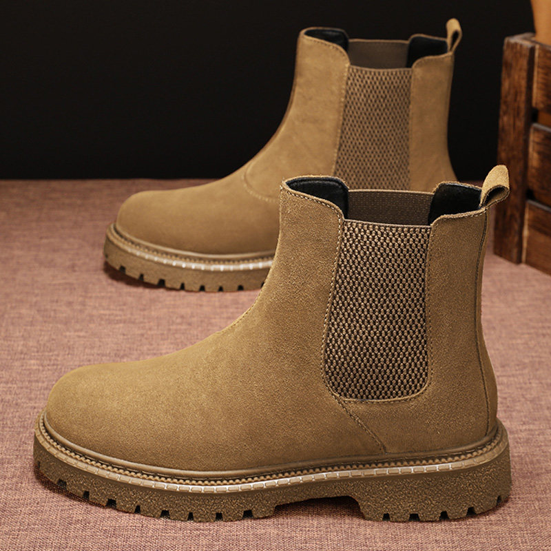 烟筒切尔西靴男反绒皮马丁靴男款机车靴秋冬季英伦高帮皮鞋沙漠靴