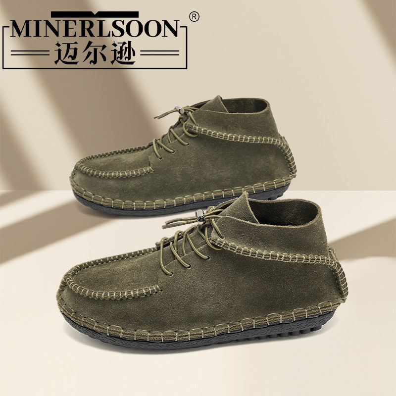 2025冬季真皮翻毛高帮皮鞋男款韩版新款英伦牛反绒中帮磨砂皮男鞋