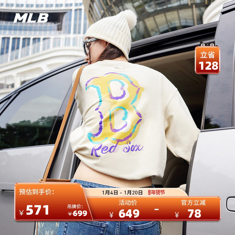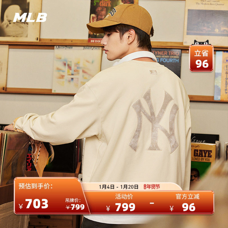 MLB官方男女情侣复古老花背标圆领套头卫衣25秋季新款MTM06