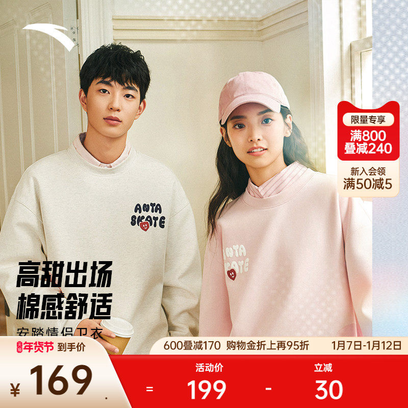 安踏情侣款连帽长袖卫衣男女冬季新款潮流休闲套头衫宽松运动上衣