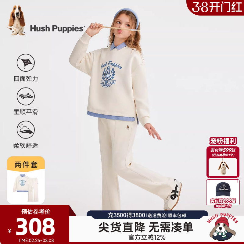 拉夏贝尔童装女童秋套装2026新款秋装女孩加绒卫衣儿童春季运动衣