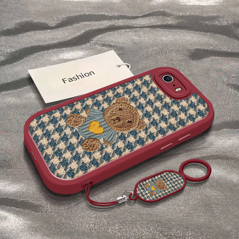 适用苹果5s手机壳iPhone se新款毛线小熊se1全包防摔se2/3保护套男女可爱5苹果SE一二三代加厚软硅胶手环