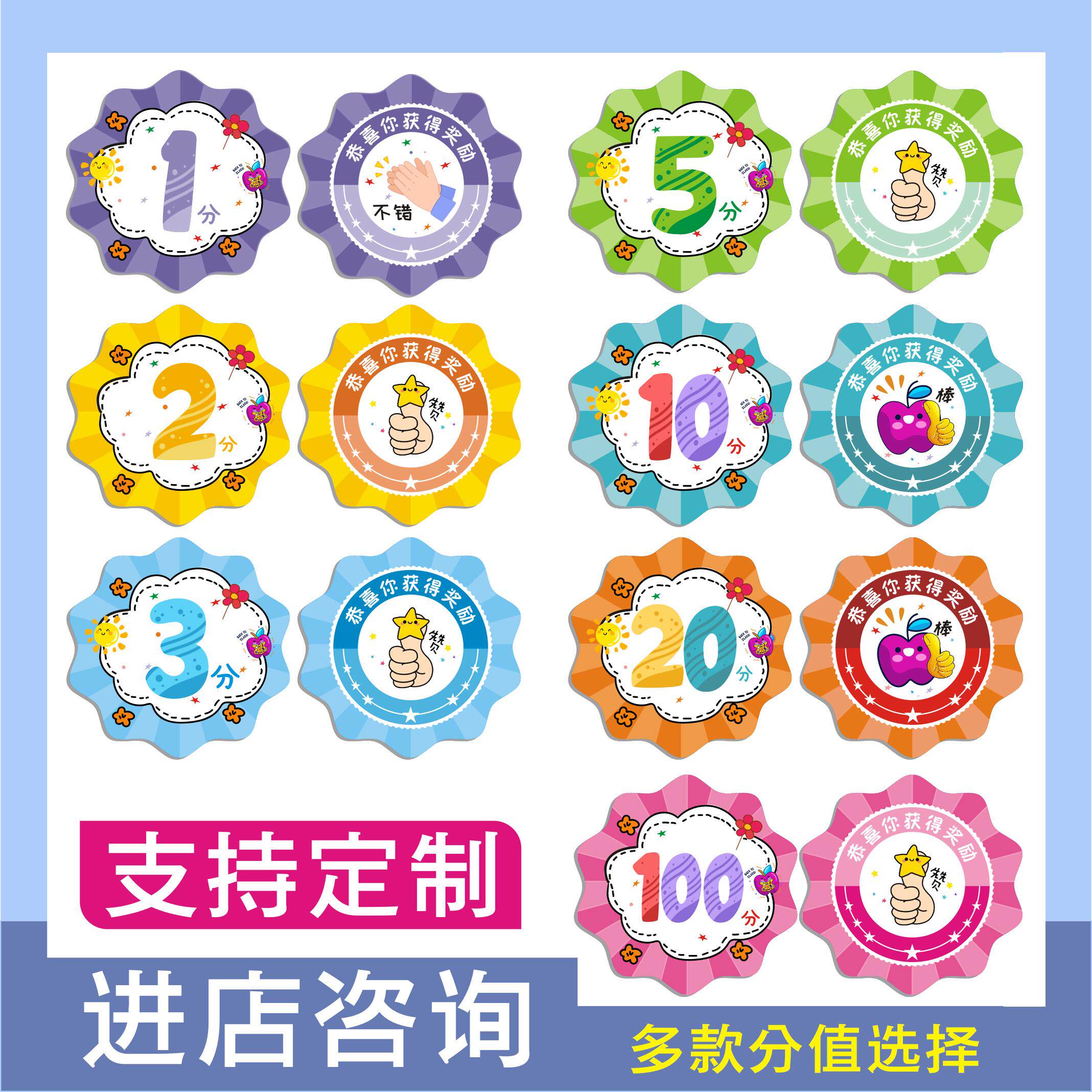 积分卡奖励卡小学生奖励孩子的积分卡定制订做培训机构logo幼儿园儿童圆形表扬卡激励卡家庭奖励兑换币积分币