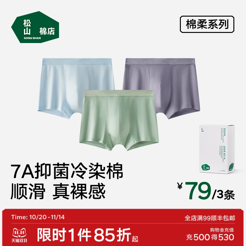 松山棉店男士内裤纯棉抗菌无痕四角裤全棉男生裤衩平角短裤春秋款
