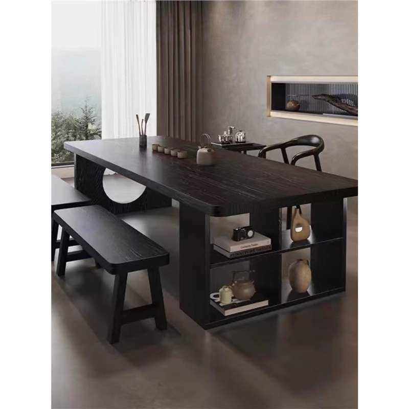 极简实木电脑书桌大板桌黑色长条办公会议桌老板泡茶接待桌工作台