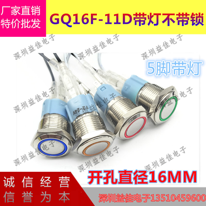 一佳GQ16AS单常开短款大电流带灯铜金属按钮开关16MM防水 电流15A