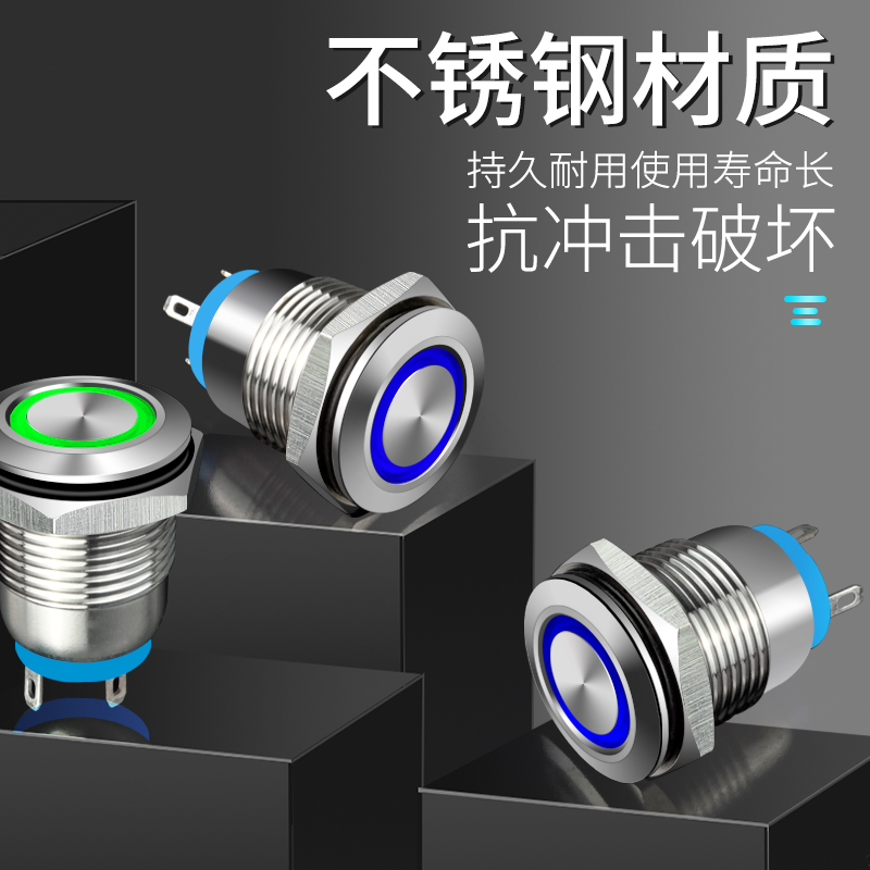 10A大电流金属按钮开关16mm19mm常开带灯环形发光24 220V蓝波