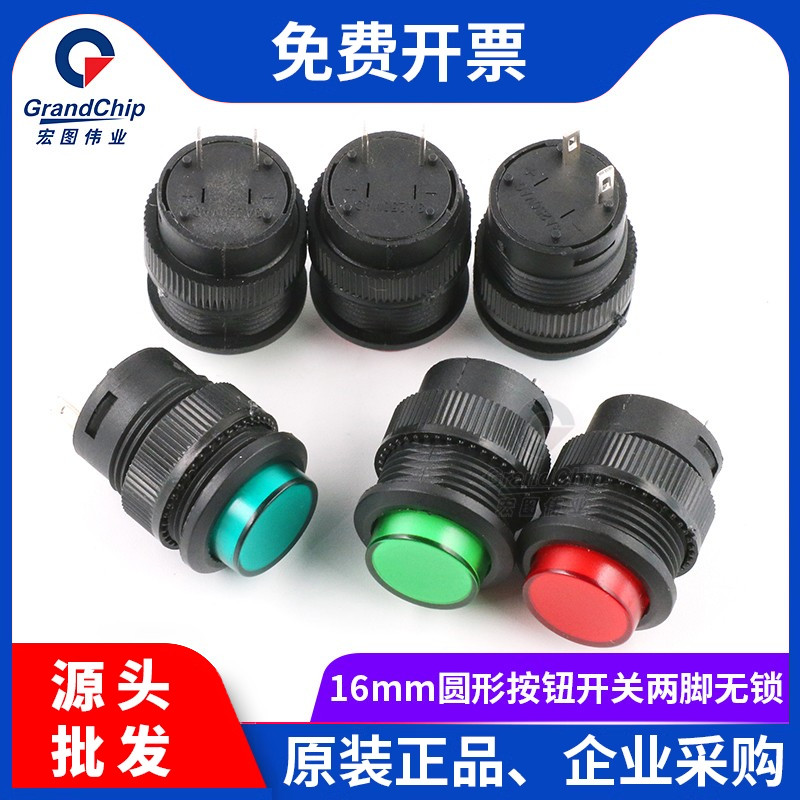 宏图伟业 按钮开关16mm圆形开关R16-503 按键自复位开关 2脚无灯