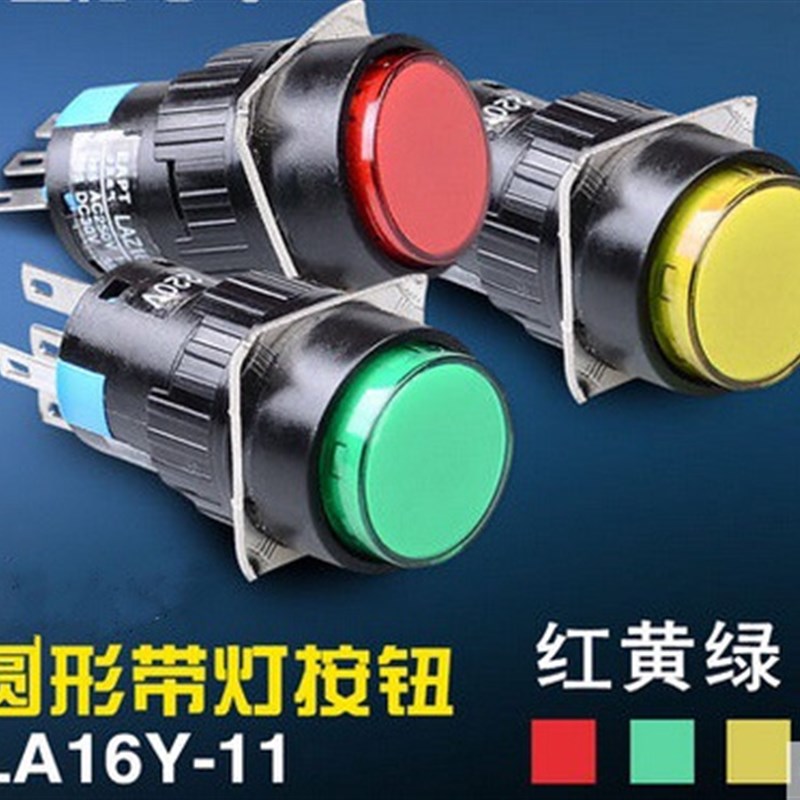 优质LA16Y-11D自复位220V带灯按钮开关16mm圆形平钮5脚AL6-M红绿