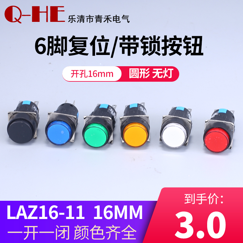 圆形自锁按钮LA16Y-22S 按钮开关16mm圆形LAZ16Y 无灯带锁6脚