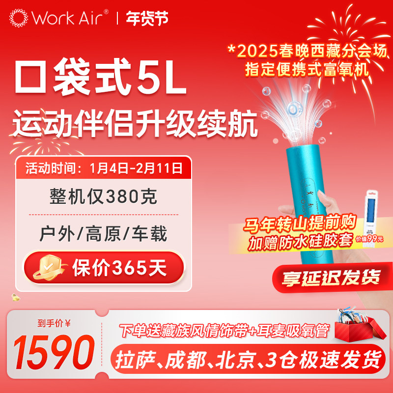 运动伴侣家用制氧便携式氧气瓶高原吸氧宝可充电口袋380克冰川兰