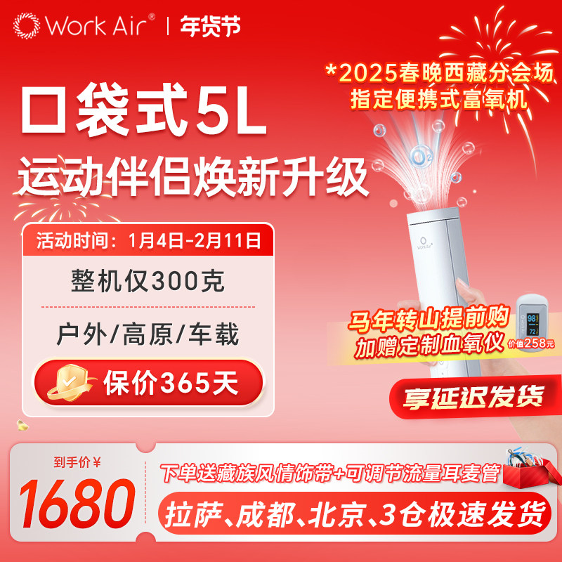 运动伴侣家用制氧便携式氧气瓶高原吸氧宝可充电口袋300克雪绒白