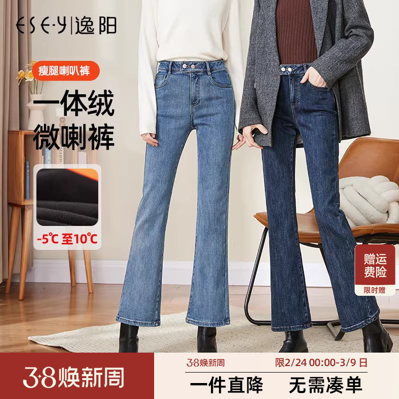 - 加绒直筒牛仔裤女