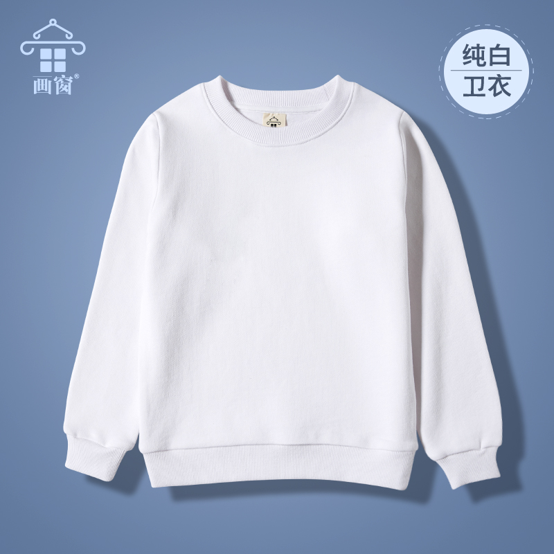儿童纯棉卫衣春秋款加绒2023男童套装白色上衣男女童长袖加厚大童