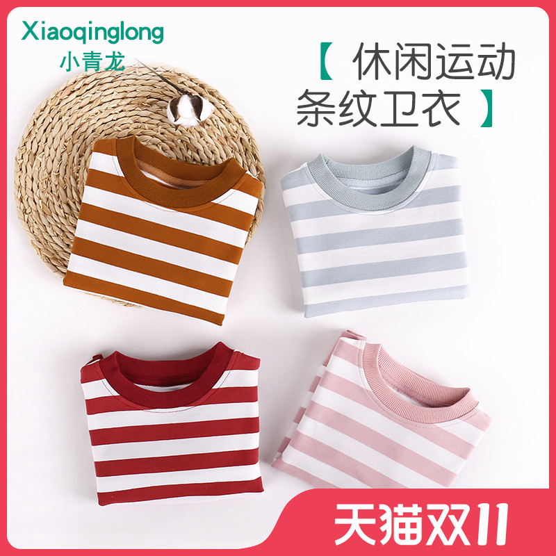 儿童纯棉卫衣 条纹T恤 男童韩版春秋圆领长袖T恤大毛圈圆领衫