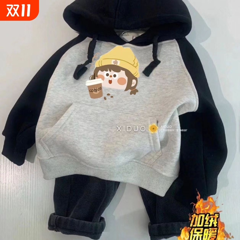 儿童纯棉卫衣加绒女童秋冬装连帽上衣洋气男宝宝中小童冬款帅气A