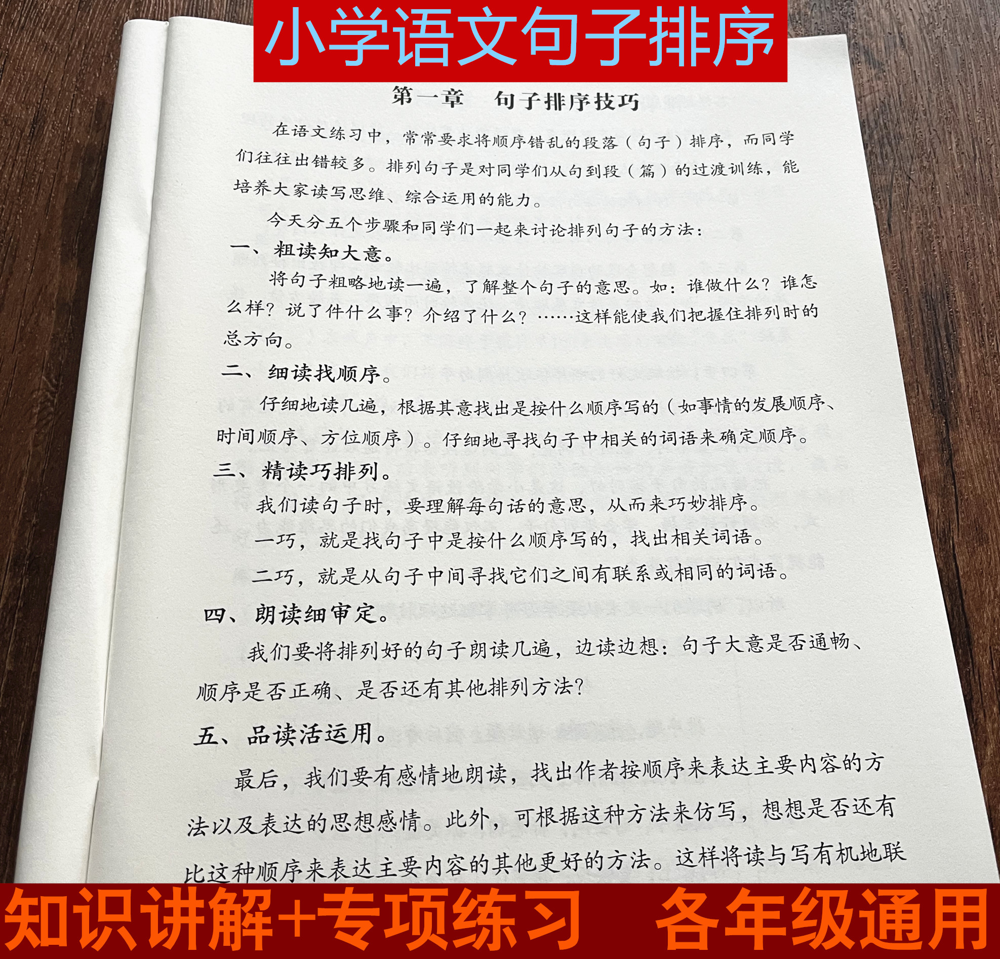 小学语文二三四五六年级句子排序专项训练要点讲解总结上下册人教部编版写作文指导排列顺序段落时间空间排序练习