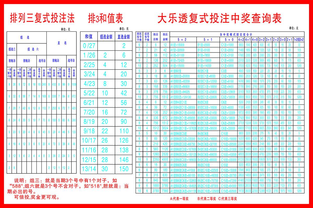 彩票店排列3和值跨度体彩参考资料玩法介绍排列三速查表海报6000