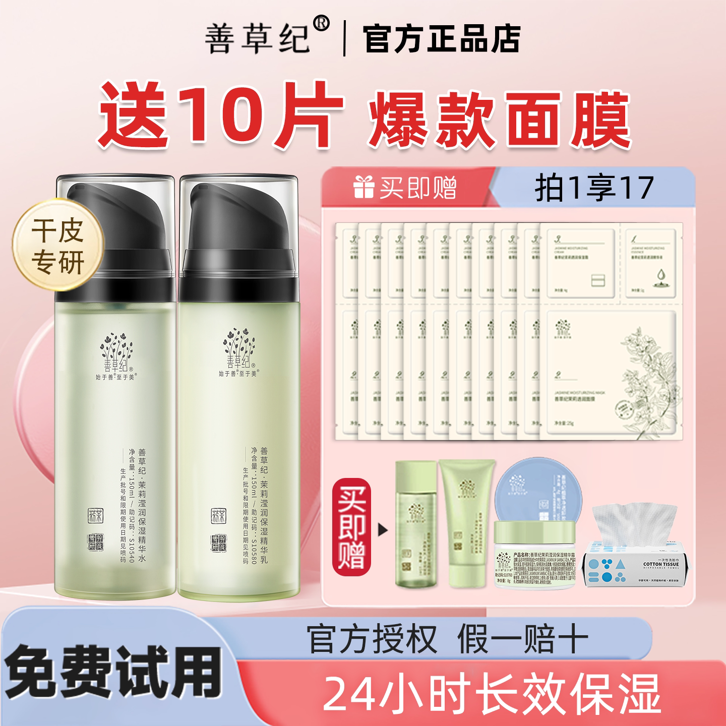善草纪三代茉莉水乳套装混干皮补水保湿护肤春夏季正品官方旗舰店