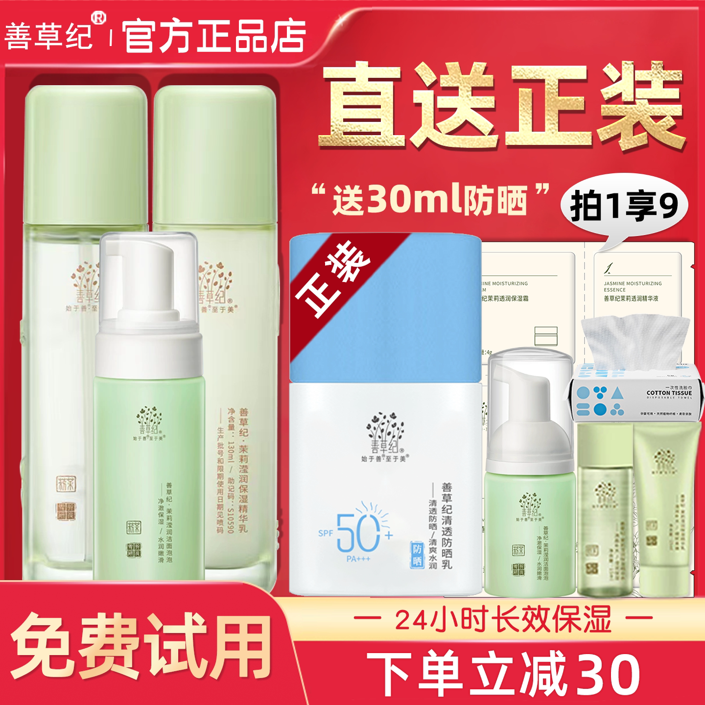 善草纪三代茉莉花水乳套装长效保湿干皮补水春夏季旗舰店官方正品