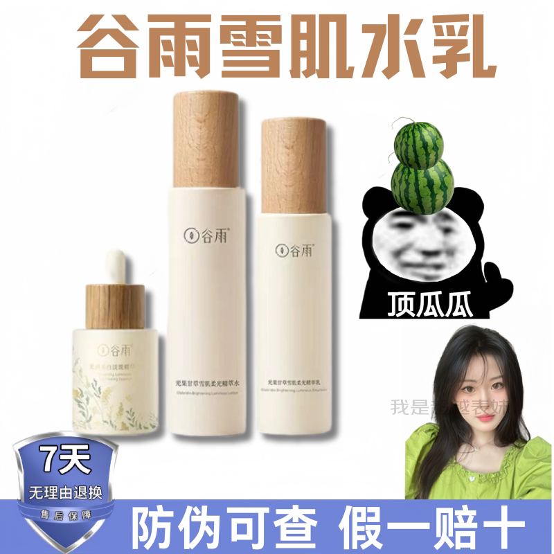 谷雨雪肌水乳套装光果甘草减黄提亮补水保湿干油皮夏季化妆水护肤