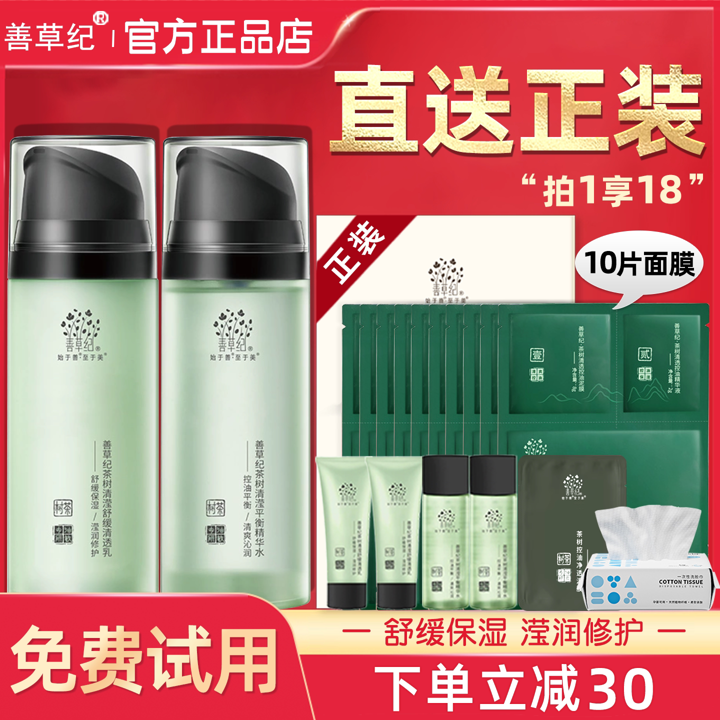 善草纪二代茶树清影版水乳套装控油祛痘保湿春夏季官方旗舰店正品